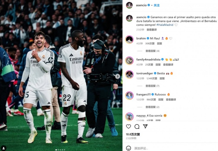勞爾-阿森西奧配文道:“我們在主場(chǎng)贏(yíng)下了首回合,但下周還會(huì )有一場(chǎng)鏖戰。伯納烏的氛圍一如既往地熱烈!”