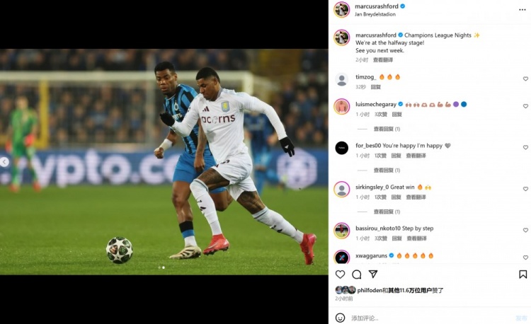 本場(chǎng)比賽拉什福德首發(fā)登場(chǎng),賽后他也在個(gè)人社媒曬出本場(chǎng)照片,配文寫(xiě)道:“歐冠之夜!我們距離晉級還有一半路程,下周我們再見(jiàn)!”